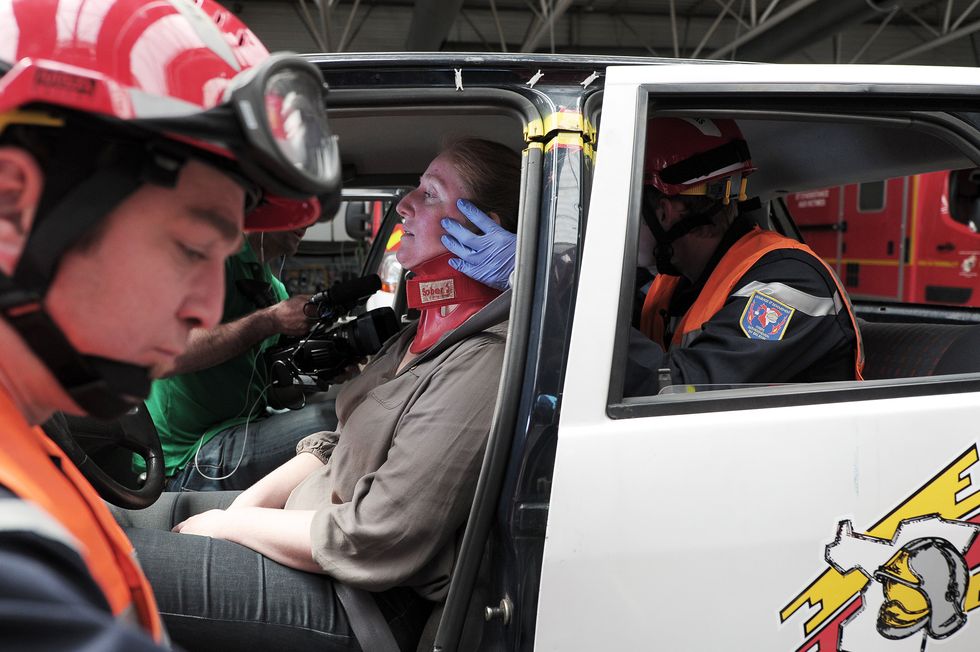 Les premiers intervenants français délivrent un hypnotisme thérapeutique à une victime d’un accident de voiture.